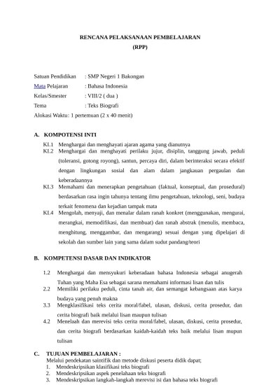 (rpp modifikasi) nama sekolah : Pembelajaran bahasa indonesia dalam kelas inklusif di smp ekakapti. Berikut ini kami bagikan contoh rpp satu lembar bahasa indonesia smp mts kurikulum 2013 k13 tahun pelajaran 2021/2022. Rencana pelaksanaan pembelajaran ( rpp ). Di indonesia melalui keputusan menteri pendidikan dan kebudayaan no.